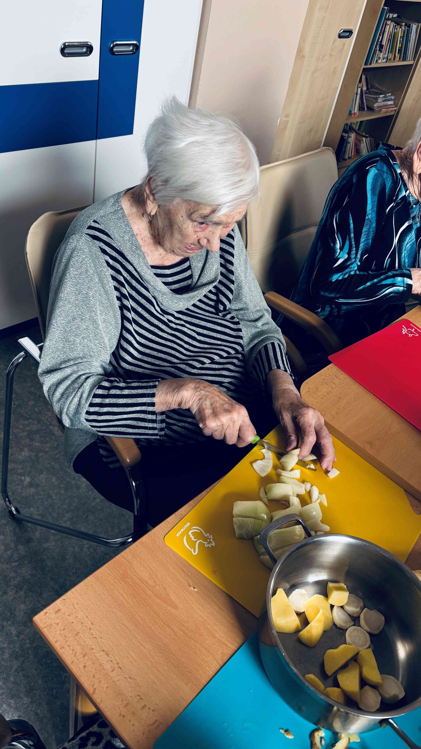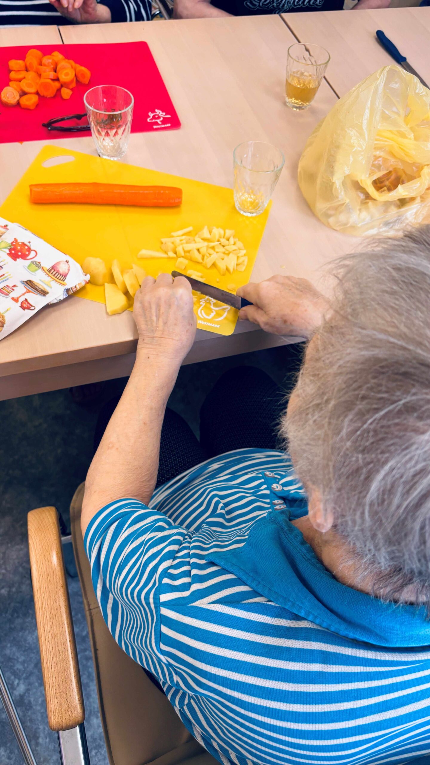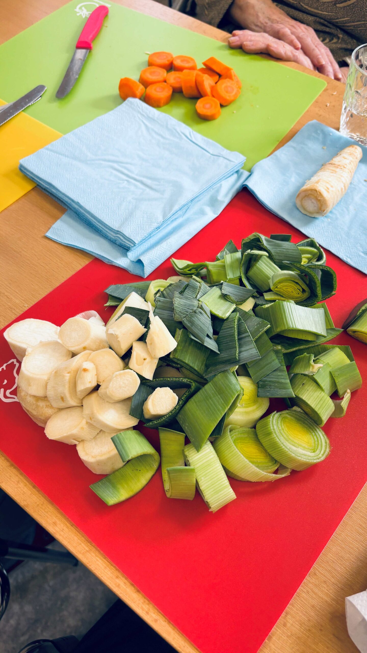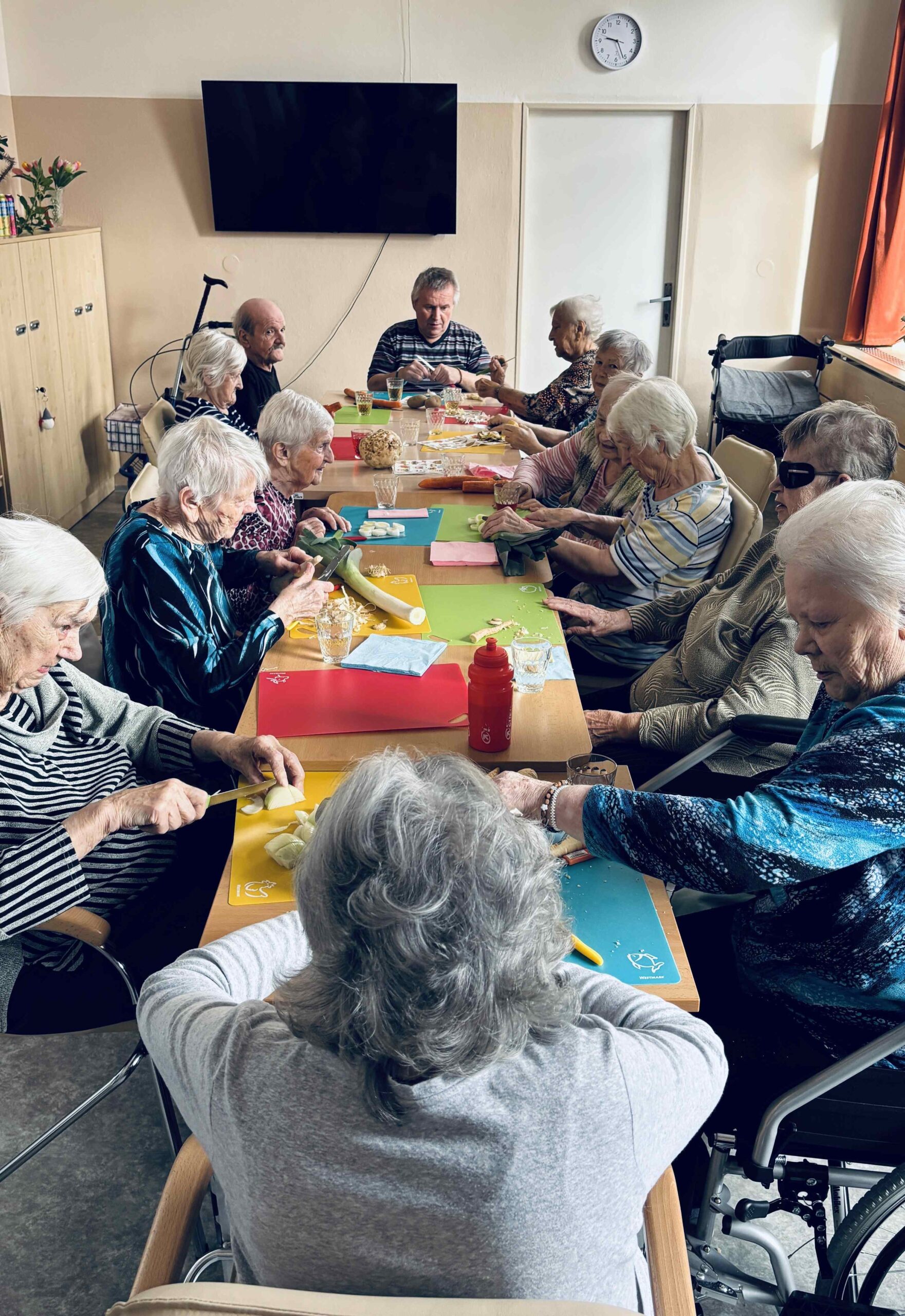 S klienty jsme vařili pohádkovou sekyrkovou polévku. Zapojili se do příprav, krájeli, míchali i ochutnávali – a hlavně jsme si užili spoustu smíchu a společného času.
